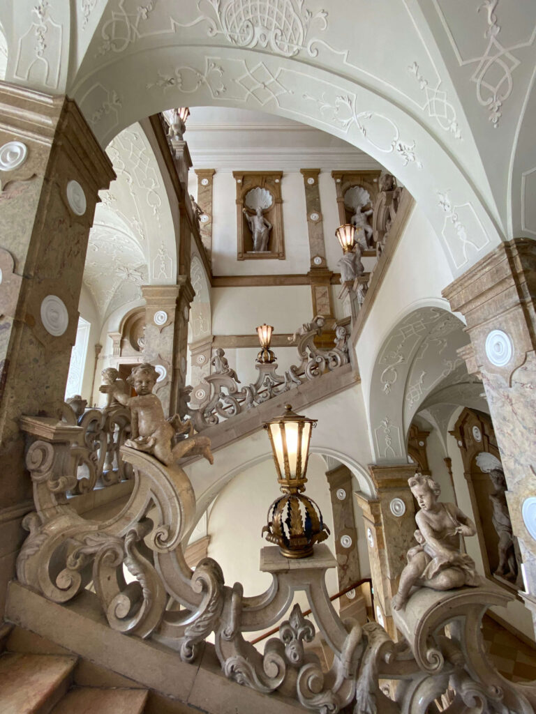 唯一見学できる「大理石の間マルモアザール」というホールにあがる階段は「天使の階段」と呼ばれ、天使の像がたくさんいて、とってもかわいらしい癒し空間でした👼💓
