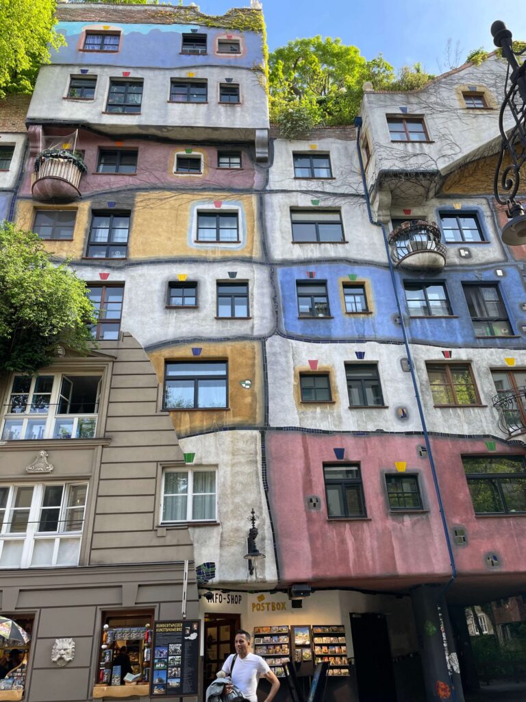 ウィーン生まれの建築家フンダートヴァッサーが建てた公共住宅らしい。